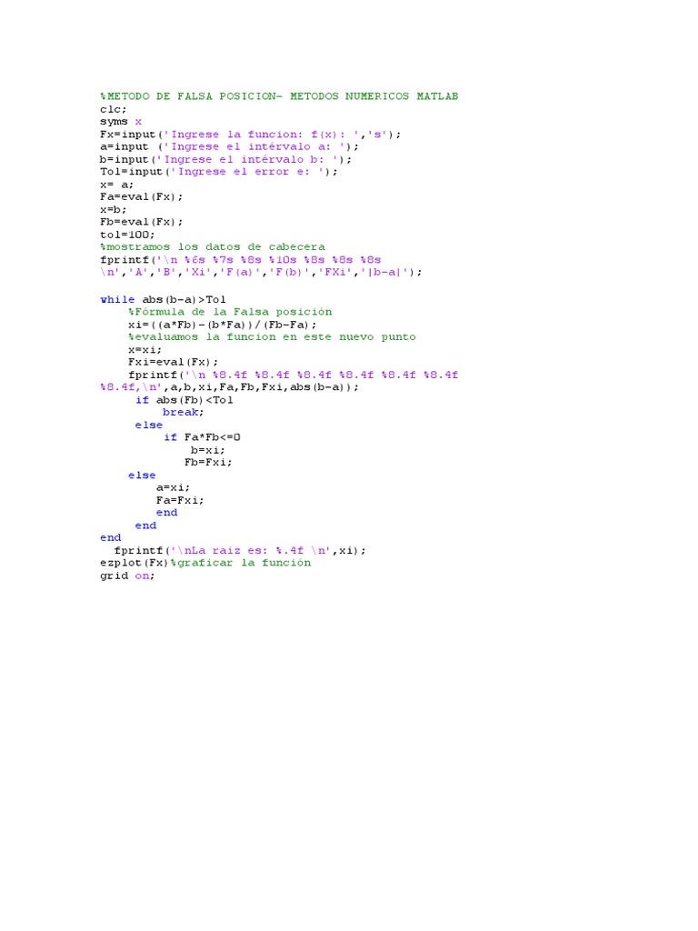 %METODO DE FALSA POSICION- METODOS NUMERICOS MATLAB
