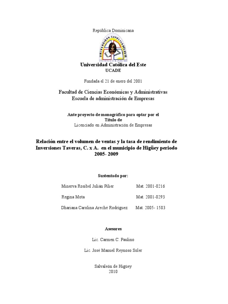 Ante proyecto de monográfico para optar por el