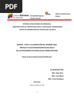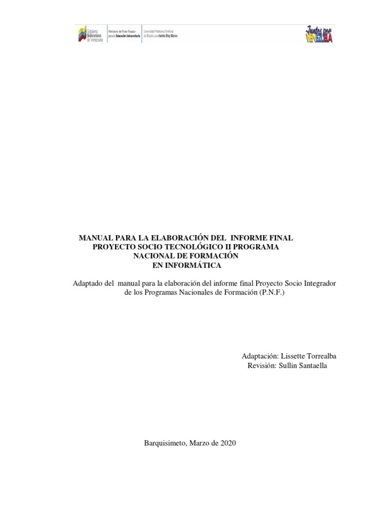 Adaptado del manual para la elaboración del informe final Proyecto Socio Integrador