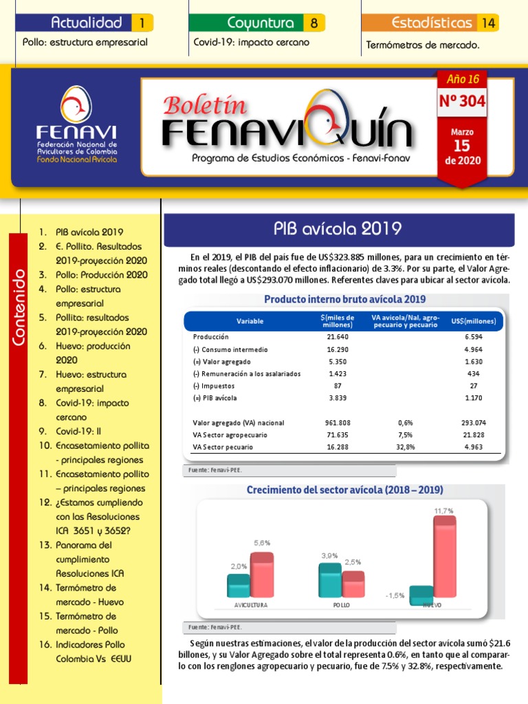 16 Marzo 15 de 2020 Fenaviquín - Programa de Estudios Económicos - Fenavi-Fonav Nº 304 - Año 16