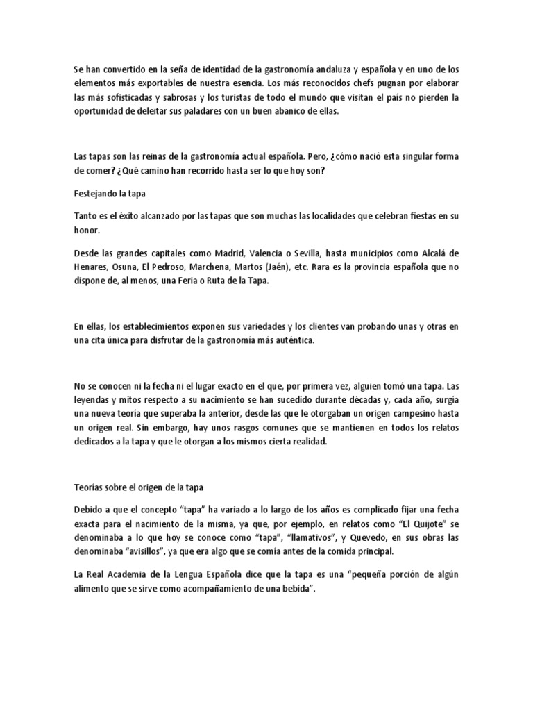 tapas. Y aunque hace años las tapas se comían antes de la comida principal, actualmente, suponen