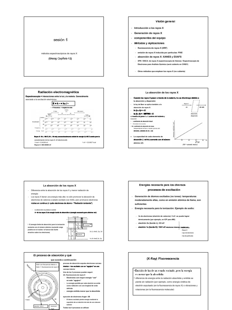 Rayos X: 10- 5- 100 Å (10- 6- 10 nm); convencionalmente unidad de energía 0,1-25 Å común para la ■ La capacidad de cada elemento de