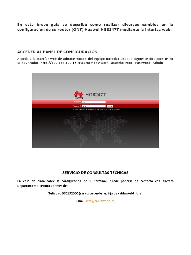 configuración de su router (ONT) Huawei HG8247T mediante la interfaz web.