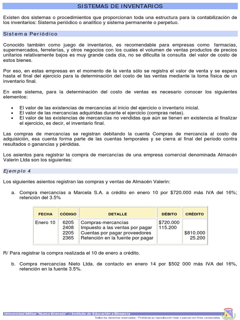 los inventarios: Sistema periódico o analítico y sistema permanente o perpetuo.