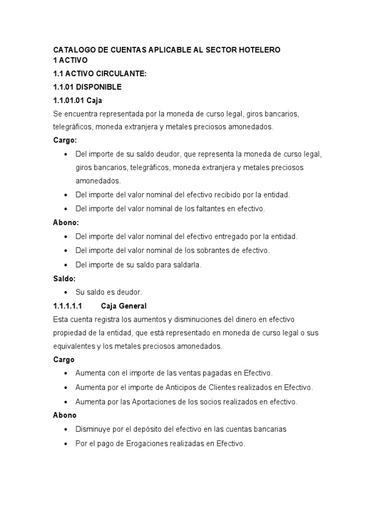 CATALOGO DE CUENTAS APLICABLE AL SECTOR HOTELERO