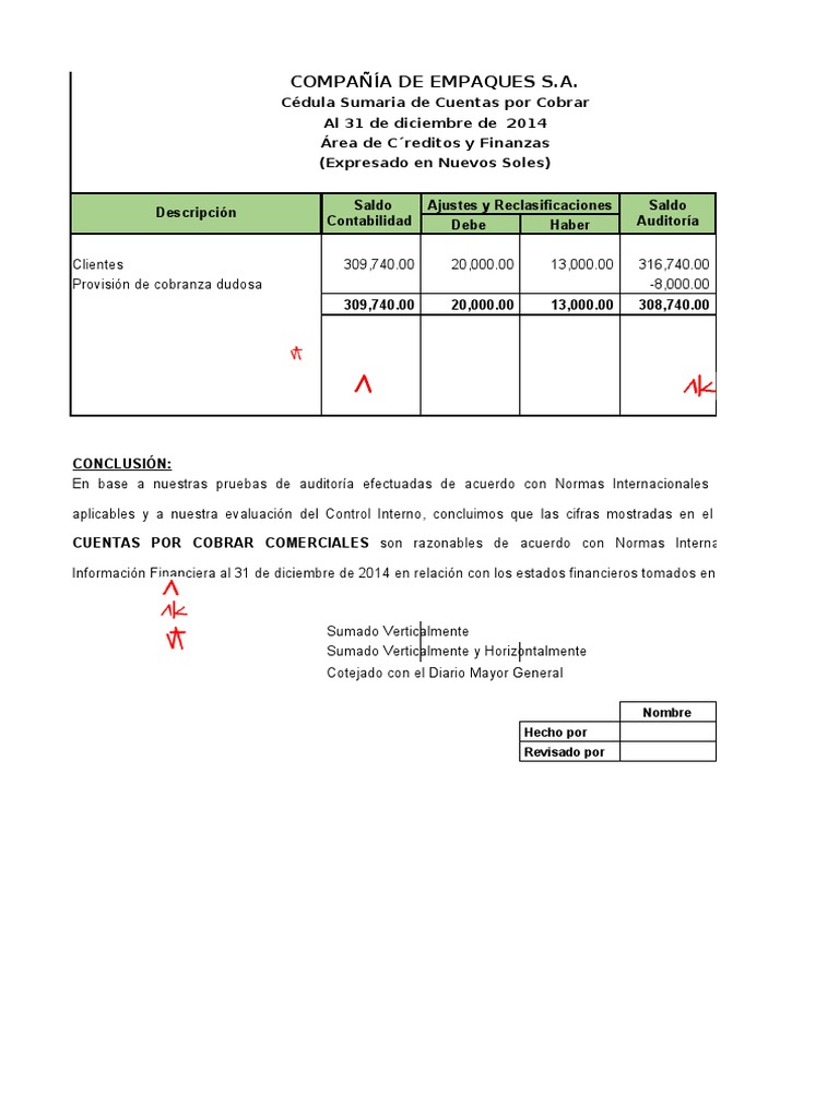 Cédula Sumaria de Cuentas por Cobrar