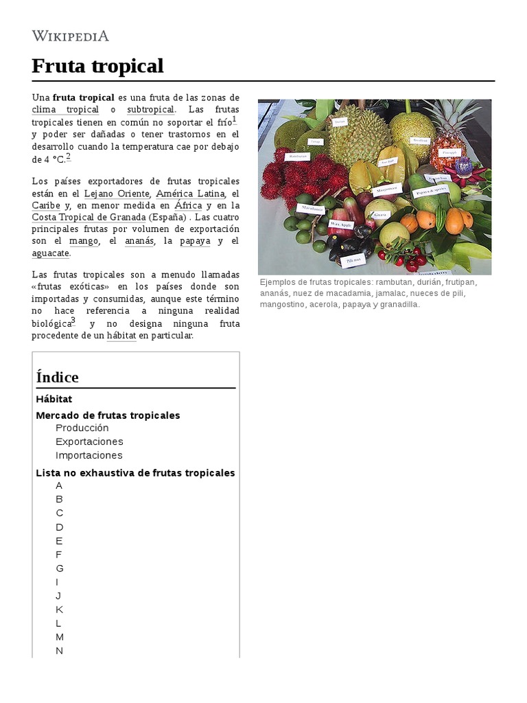 Una fruta tropical es una fruta de las zonas de
