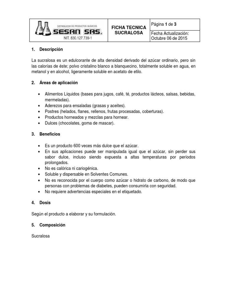 las calorías de éste; polvo cristalino blanco a blanquecino, totalmente soluble en agua, en