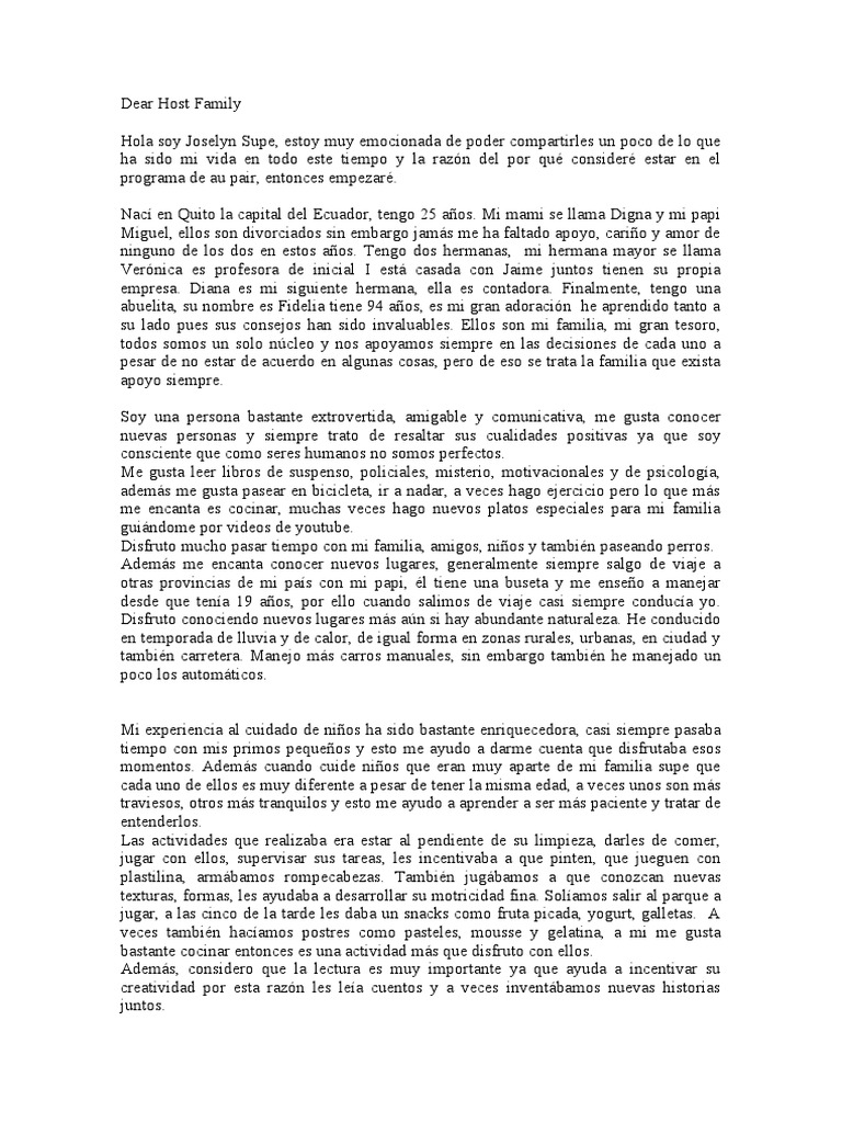 Se que ser au pair es una enorme responsabilidad, y que como host family van a querer