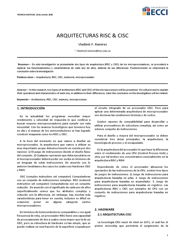 Palabras clave— Arquitectura, RISC, CISC, memoria, microprocesador.