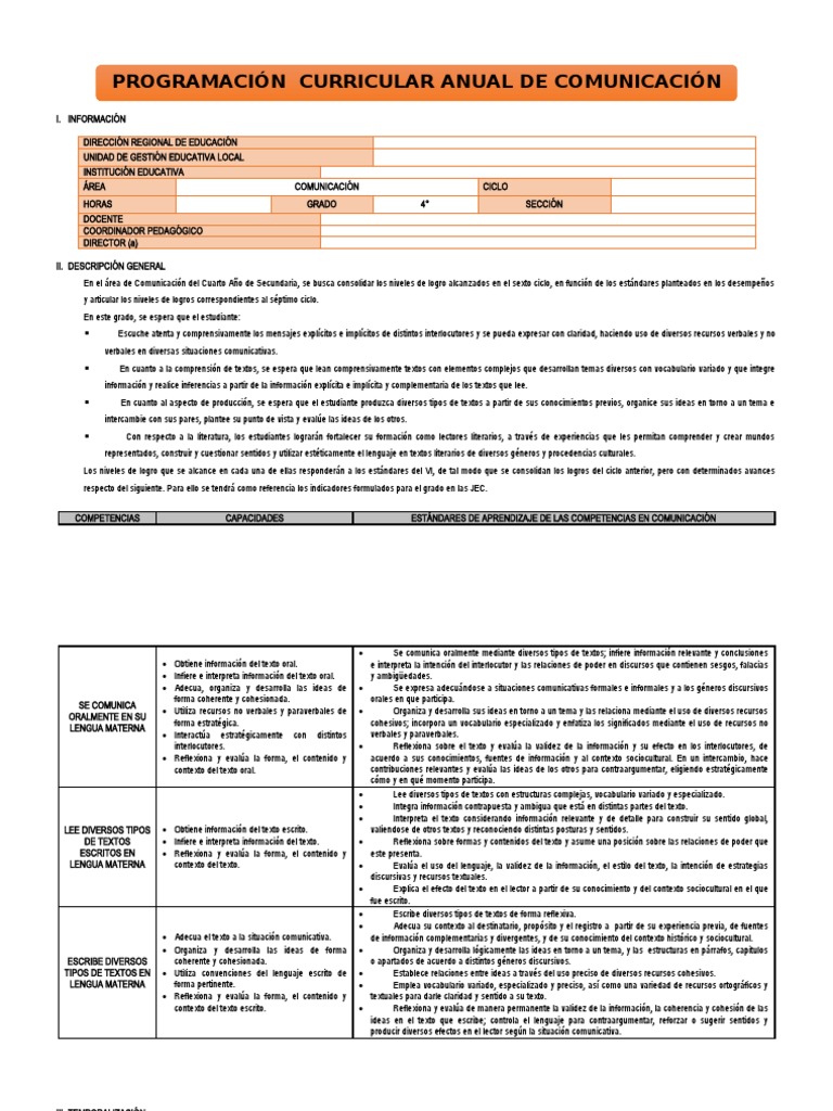 PROGRAMACIÓN CURRICULAR ANUAL DE COMUNICACIÓN