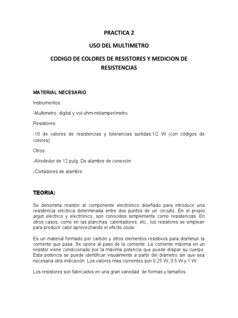 CODIGO DE COLORES DE RESISTORES Y MEDICION DE