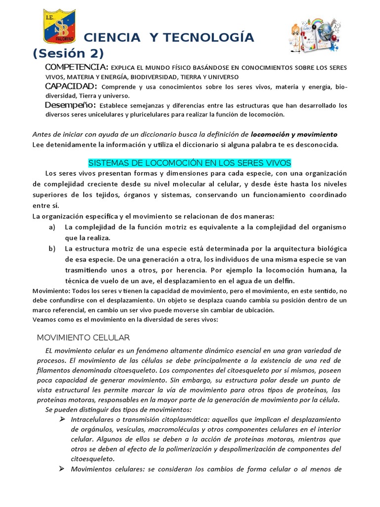 d) Concluye: ¿Es importante el movimiento celular? ¿Por qué? Sustenta tu respuesta.