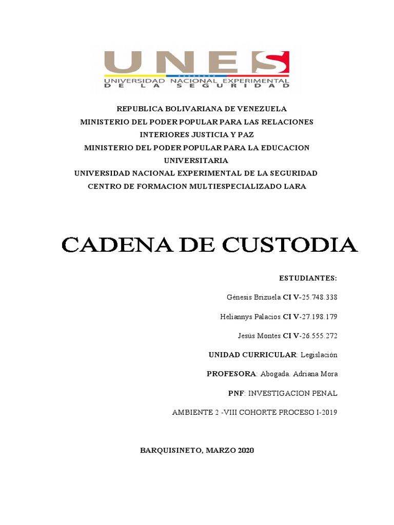 La cadena de custodia es un documento escrito legal le cual enmarca el procedimiento