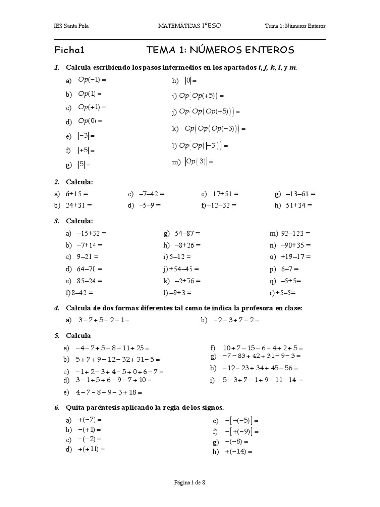 Ficha1 TEMA 1: NÚMEROS ENTEROS