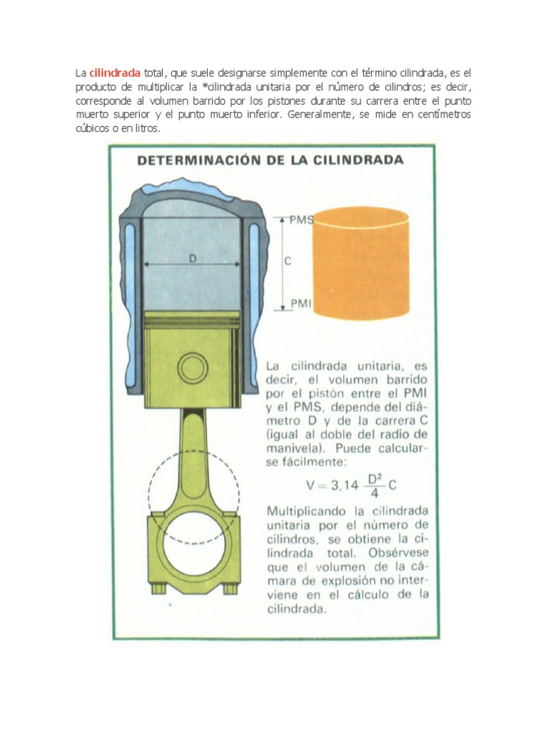 producto de multiplicar la *cilindrada unitaria por el número de cilindros; es decir,