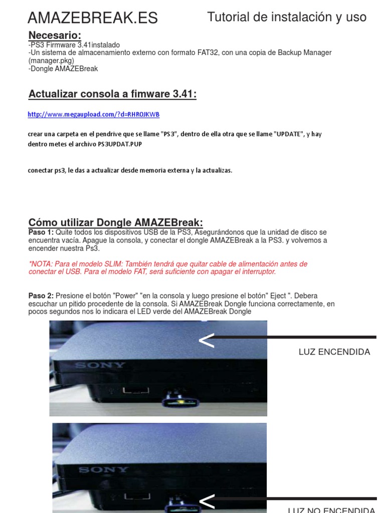 encuentra vacía. Apague la consola, y conectar el dongle AMAZEBreak a la PS3. y volvemos a