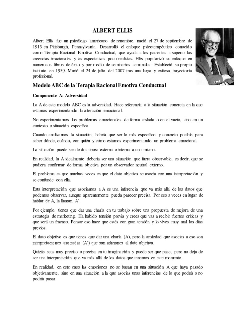 creencias irracionales y las expectativas poco realistas. Ellis popularizó su enfoque en