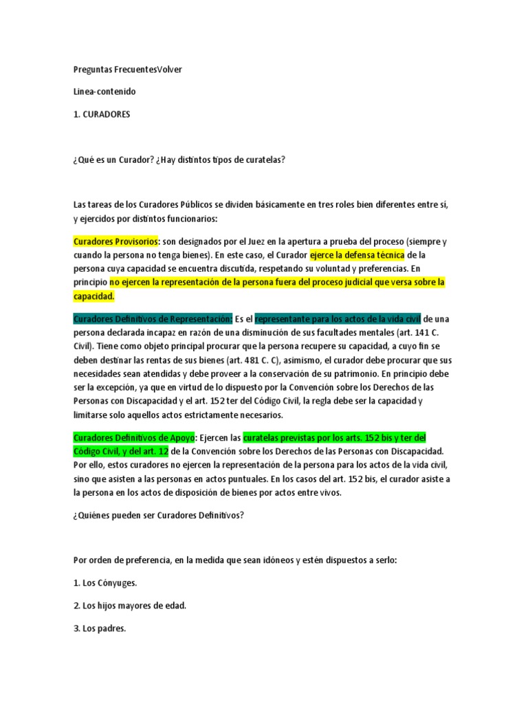 Curadores Definitivos de Apoyo: Ejercen las curatelas previstas por los arts. 152 bis y ter del
