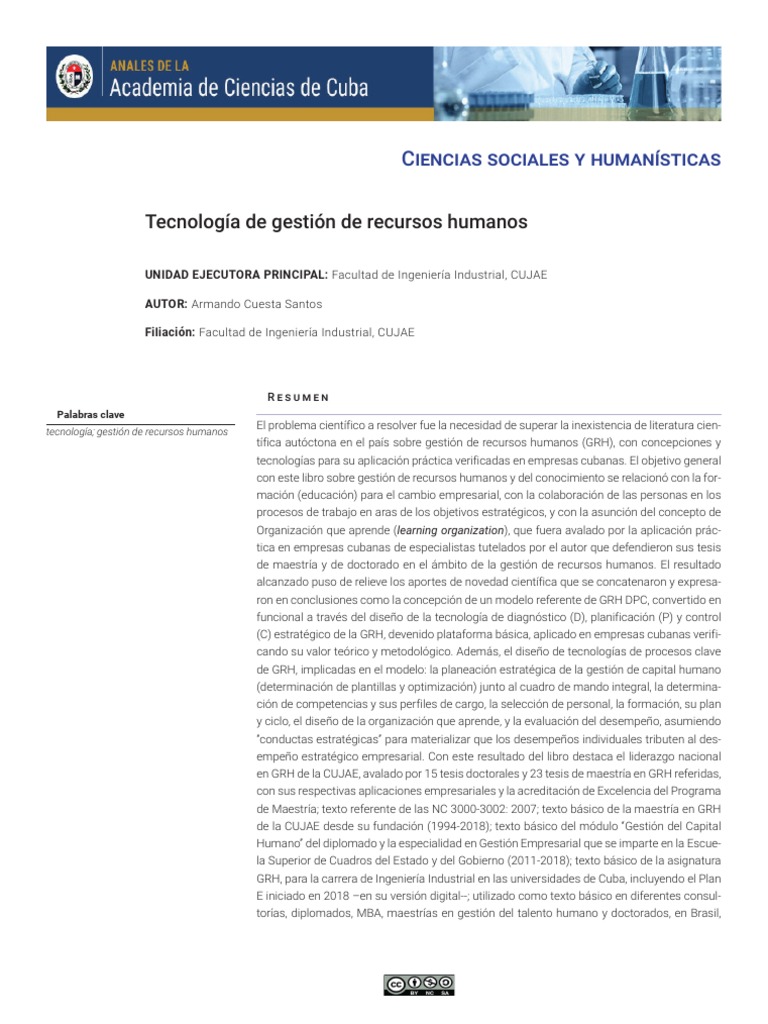 en GRH de la CUJAE, avalado por 15 tesis doctorales y 23 tesis de maestría en GRH referidas,