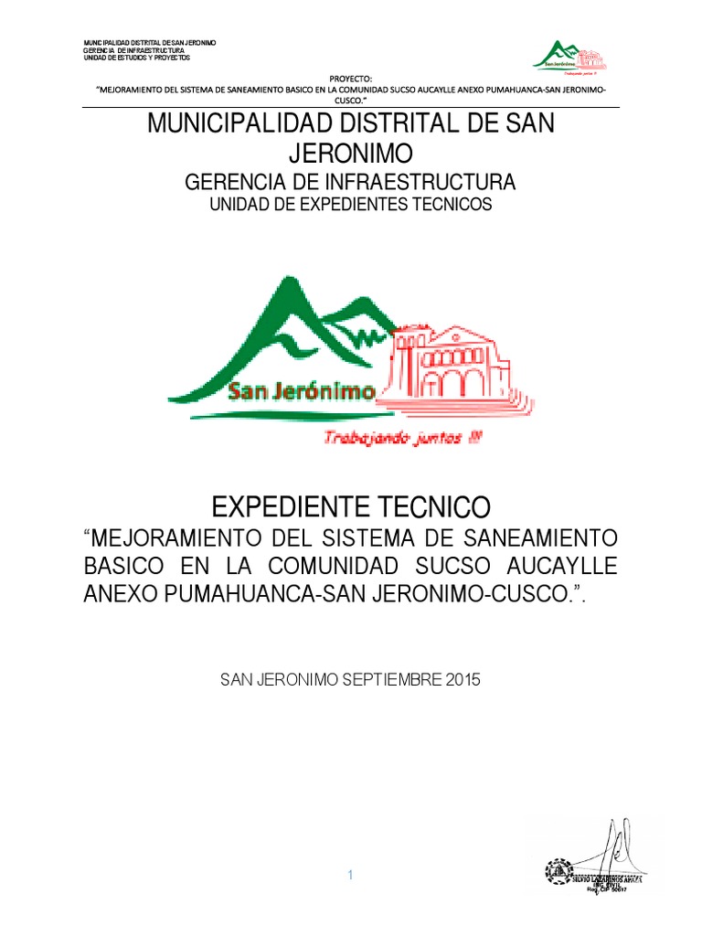: "MEJORAMIENTO DEL SISTEMA DE SANEAMIENTO BASICO EN LA COMUNIDAD SUCSO AUCAYLLE ANEXO PUMAHUANCA-SAN JERONIMO-CUSCO."