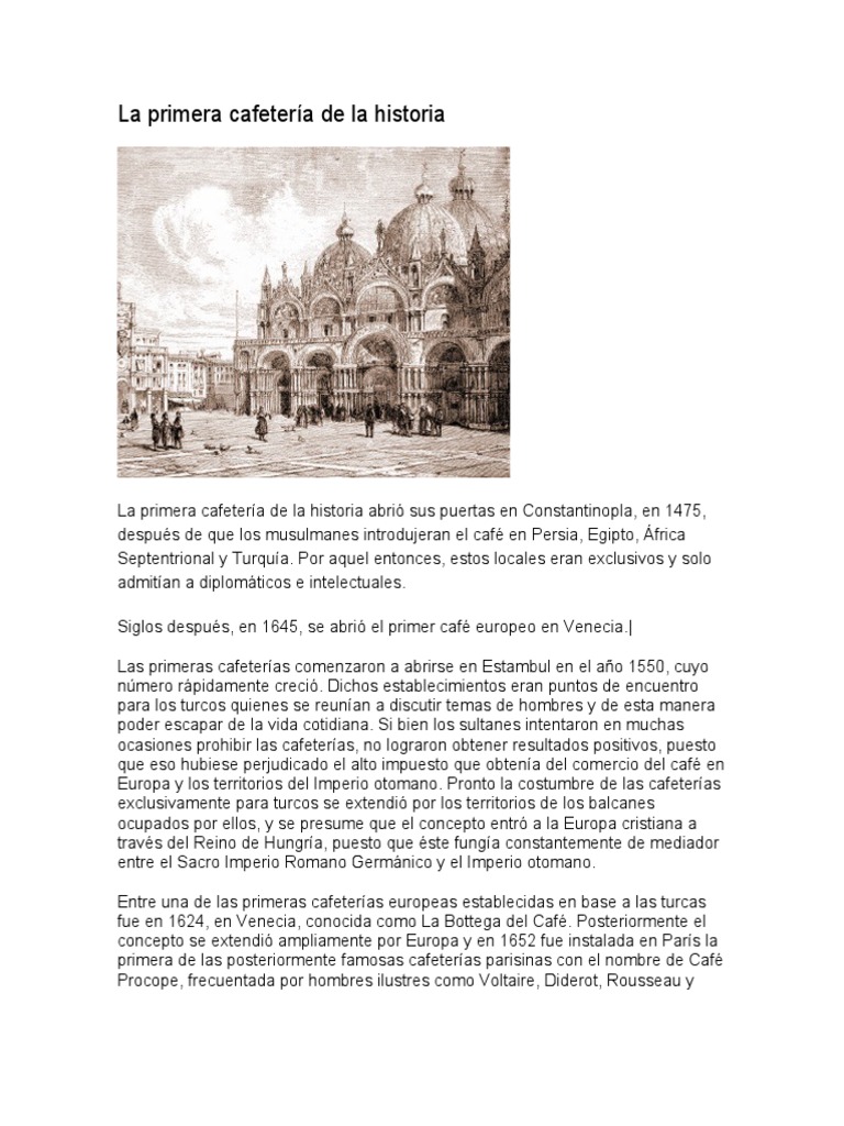 Siglos después, en 1645, se abrió el primer café europeo en Venecia.|