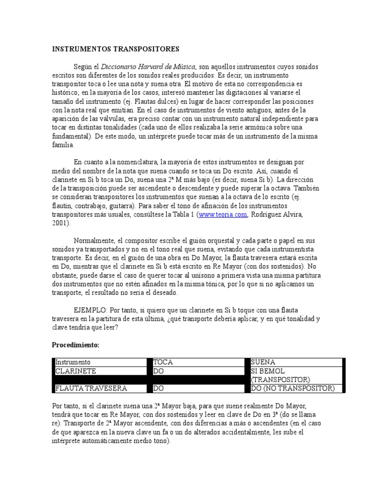 transpositores más usuales, consúltese la Tabla 1 (www.teoria.com, Rodríguez Alvira,