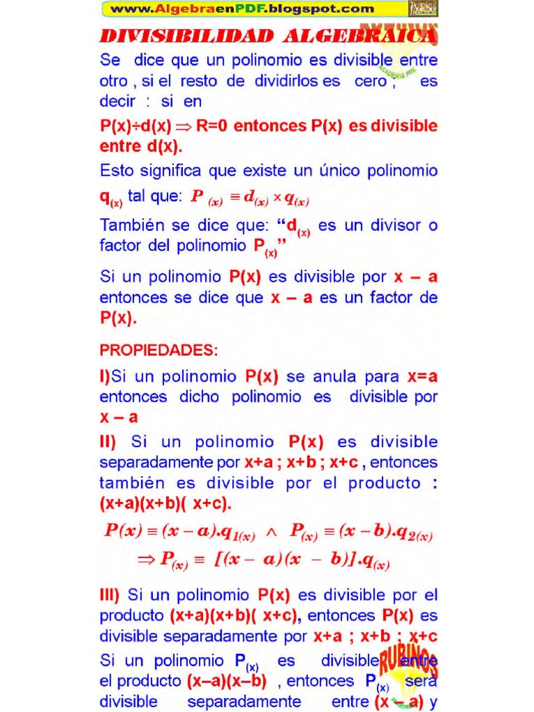 divisible separadamente — entre (x*,a) y[ECE] wonw.Youtube.com/Rubinos ALGEBRA VERSION WEB) RUBIROS