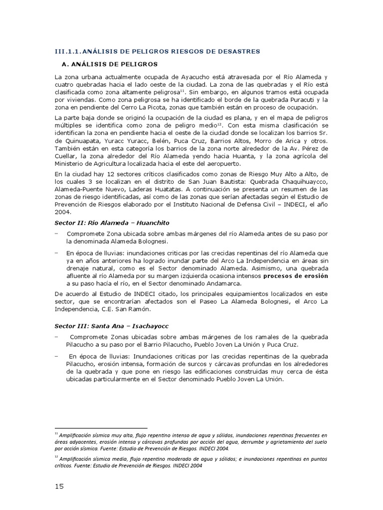 críticos. Fuente: Estudio de Prevención de Riesgos. INDECI 2004