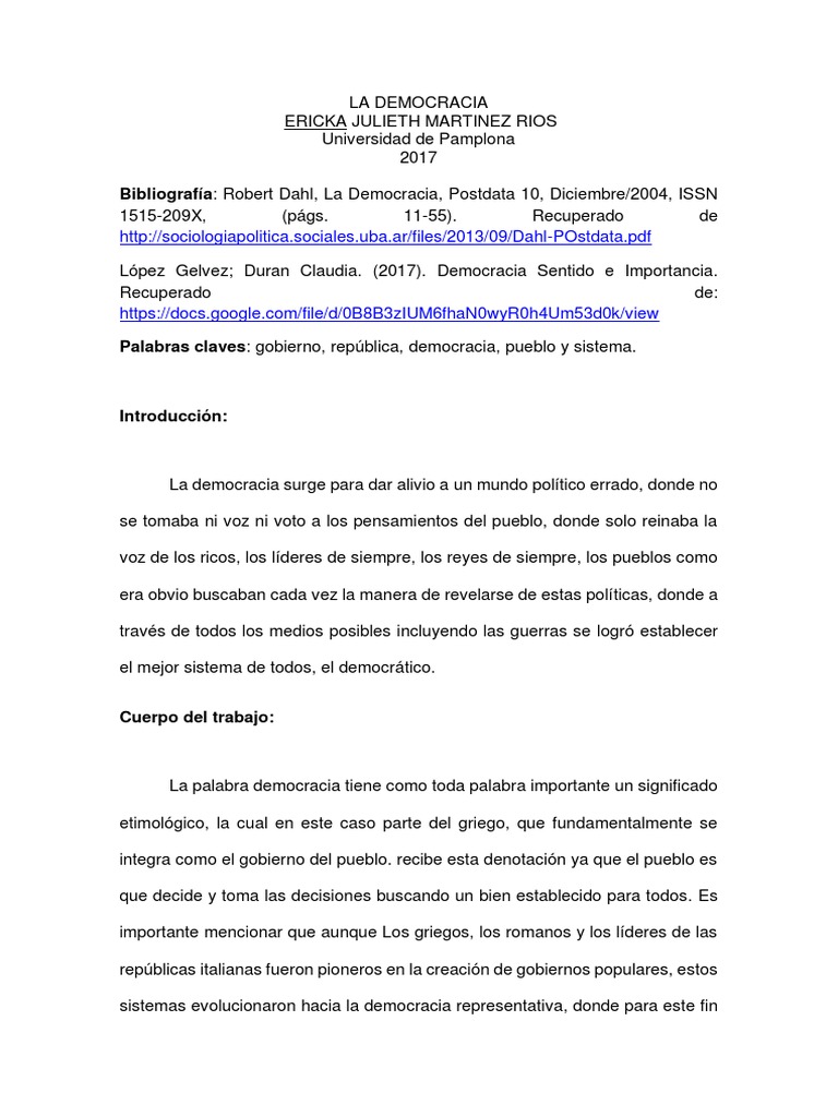 López Gelvez; Duran Claudia. (2017). Democracia Sentido e Importancia.