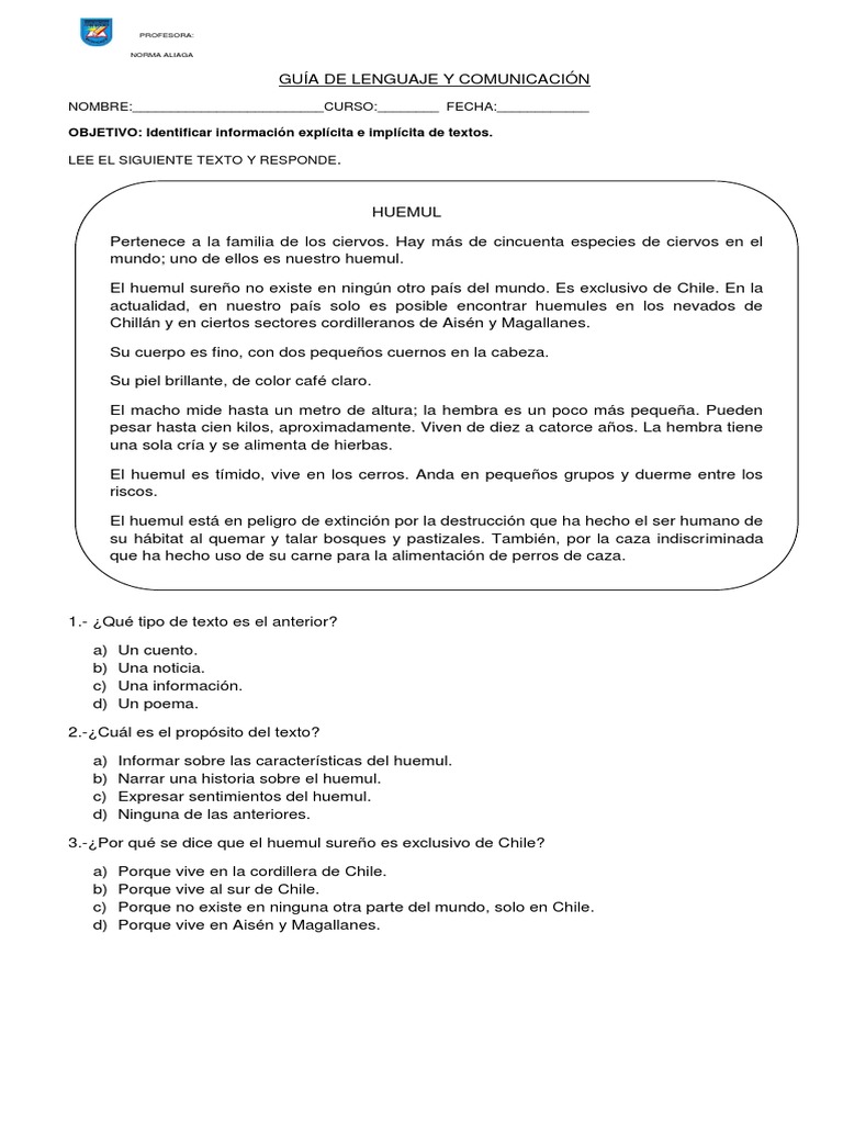 a) Informar sobre las características del huemul.