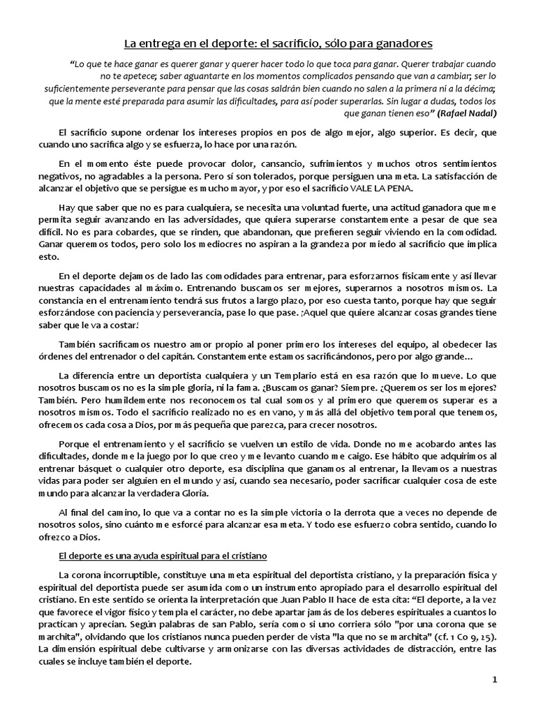 que favorece el vigor físico y templa el carácter, no debe apartar jamás de los deberes espirituales a cuantos lo
