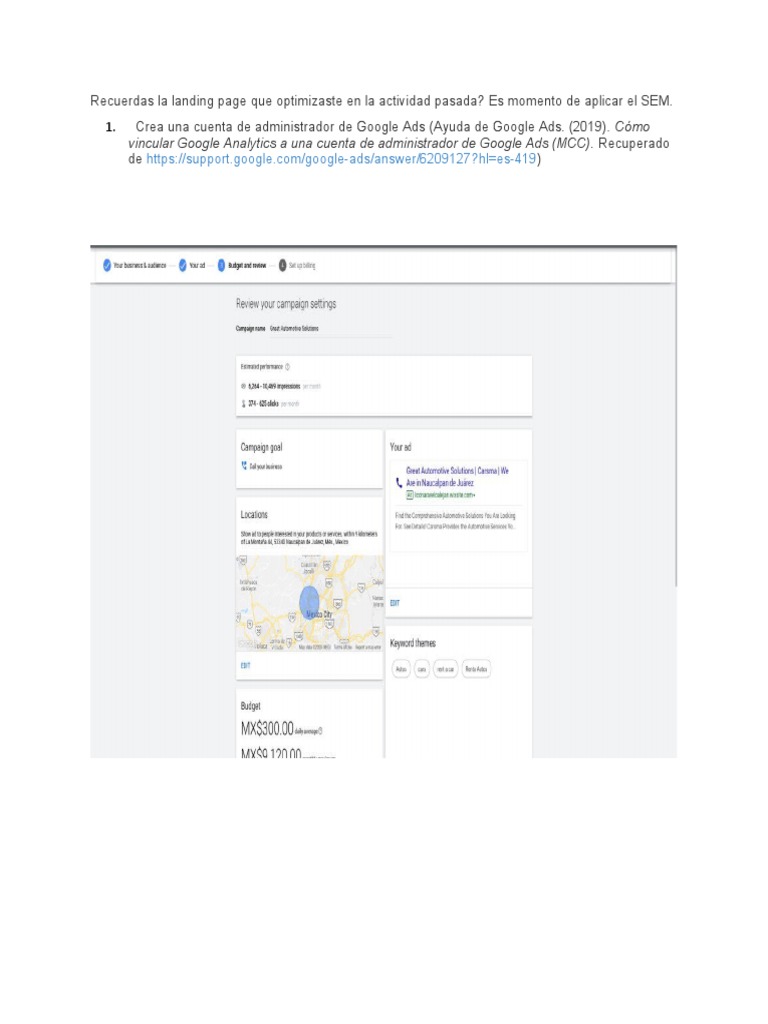 Recuerdas la landing page que optimizaste en la actividad pasada? Es momento de aplicar el SEM.