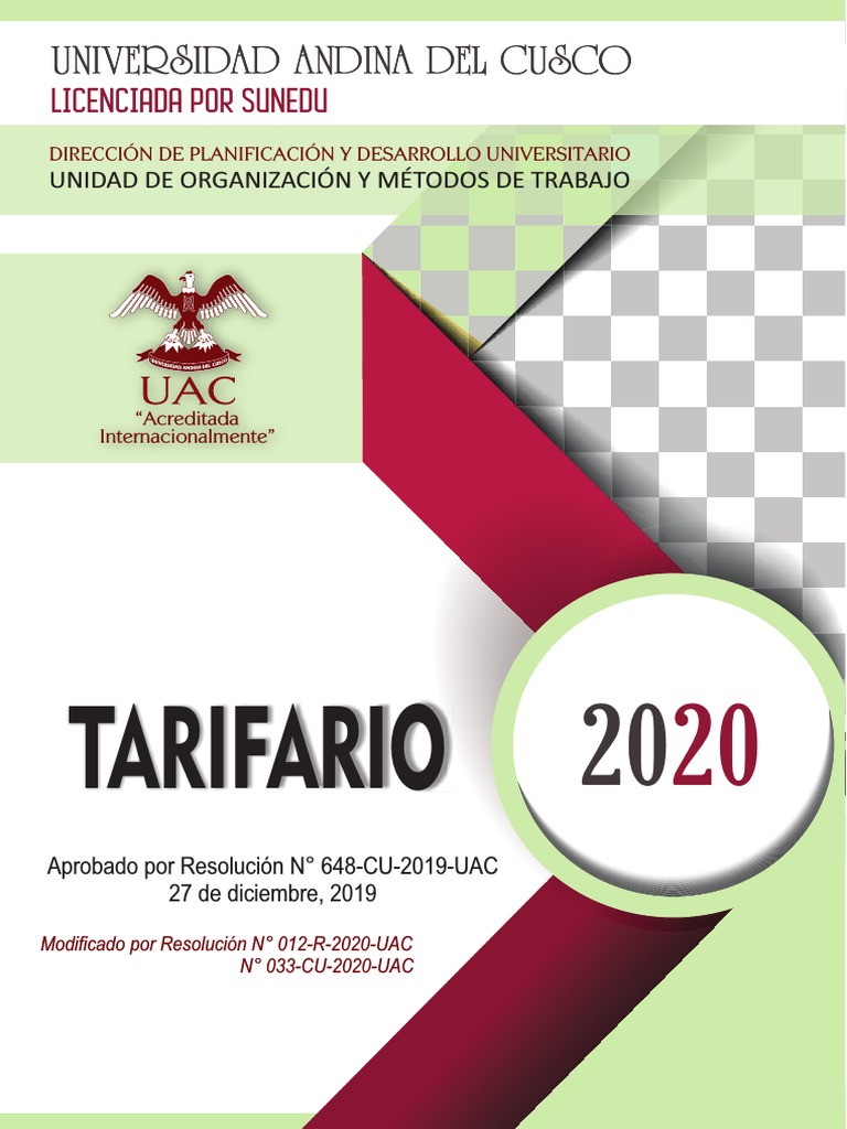 El TUPA y Tarifario 2020 de la Universidad Andina del Cusco, ha sido actualizado por la Dirección de Planificación y