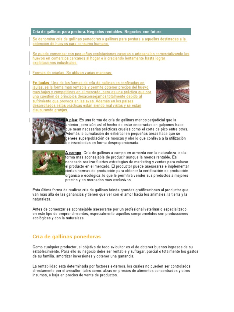 alternativa artesanal que requiere poco capital y un alto grado de asociativismo. Se trata del pollo y