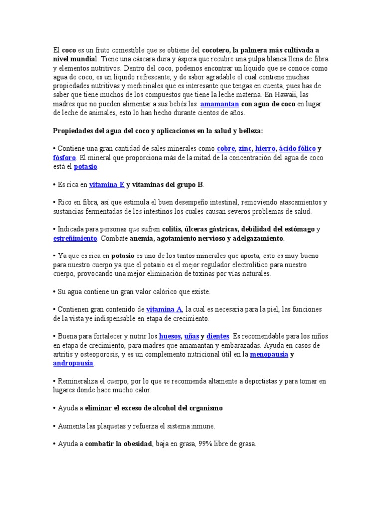 agua de coco, es un líquido refrescante, y de sabor agradable el cual contiene muchas