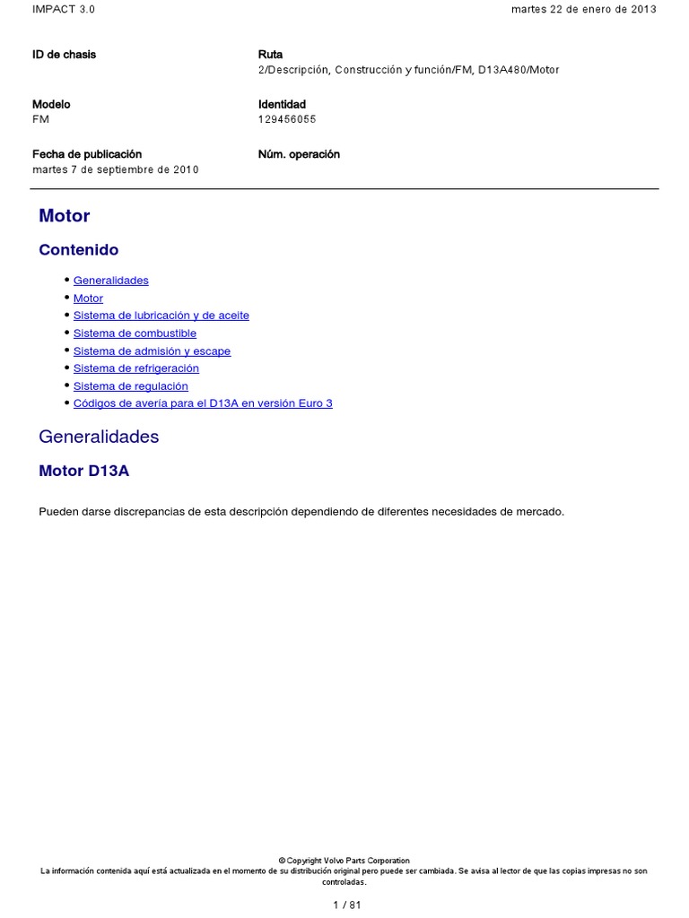 Proprietary Subsystem Identification Description (Identificación de componente única de Volvo).