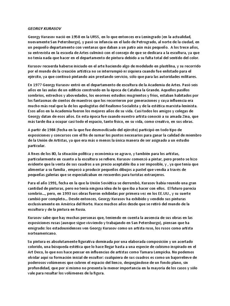 particularmente en cuanto a la escultura se refiere. Kurasov comenzó a pintar, pero pronto se hizo
