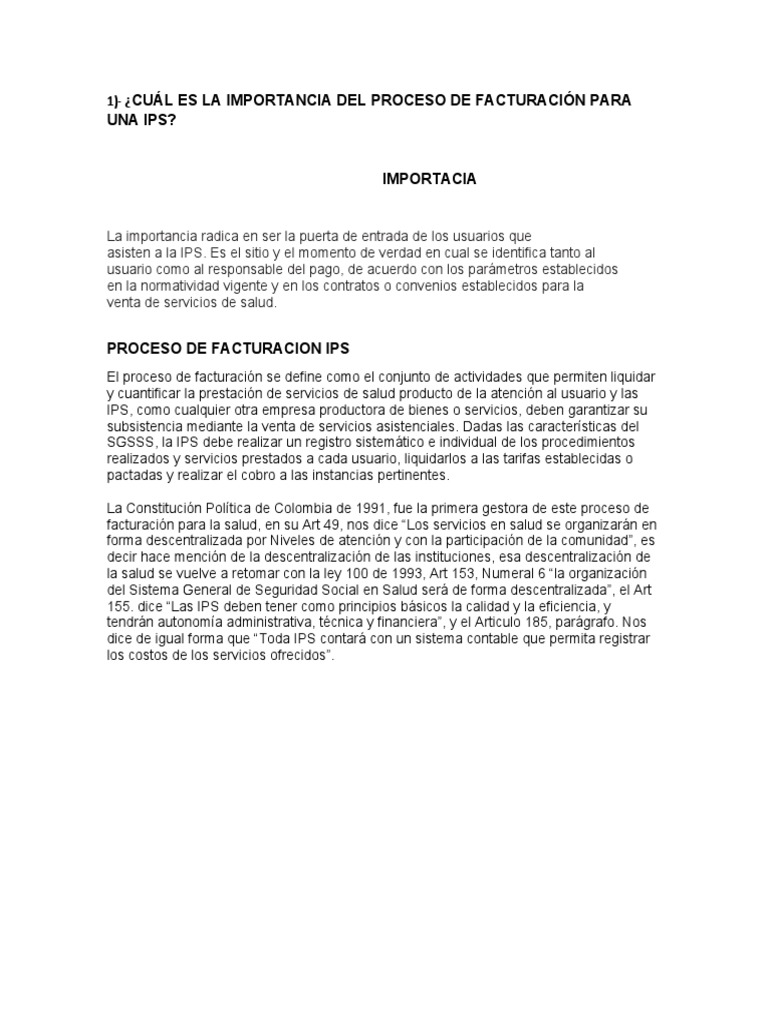 1)- ¿CUÁL ES LA IMPORTANCIA DEL PROCESO DE FACTURACIÓN PARA