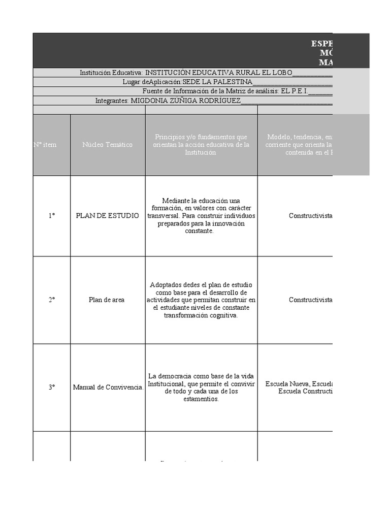 MATRIZ DE ANÁLISIS - PROYECTO EDUCATIVO INSTITUCIONAL