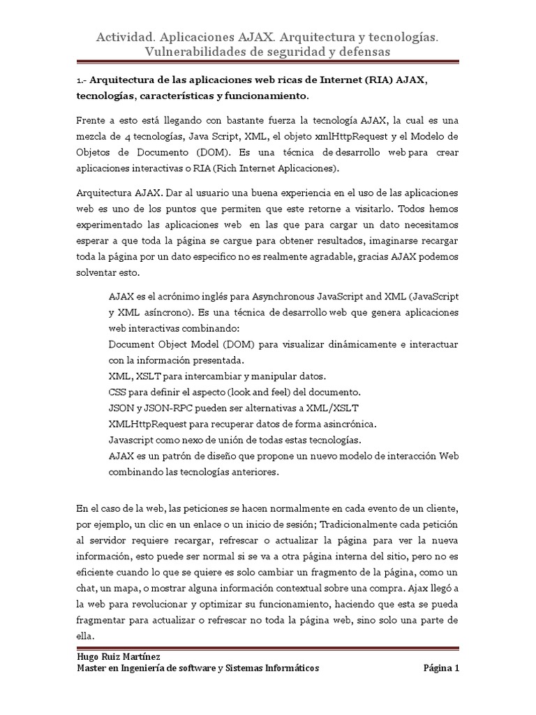1.- Arquitectura de las aplicaciones web ricas de Internet (RIA) AJAX,