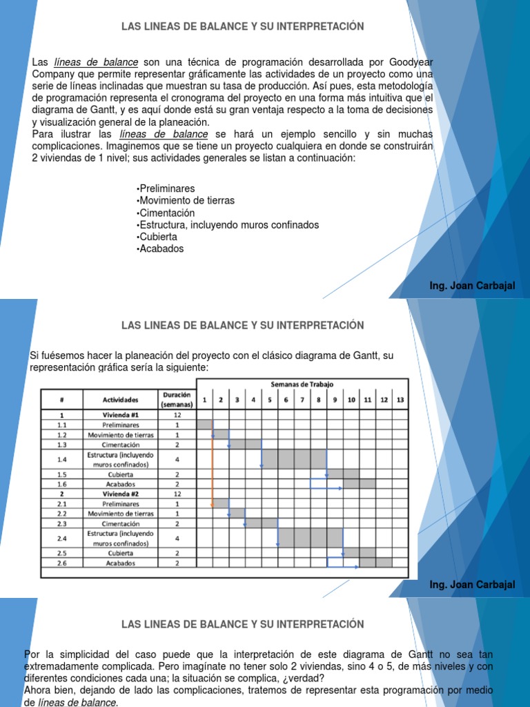 Mediante las líneas de balance podemos ubicarnos en el tiempo con bastante facilidad y estimar porcentajes de