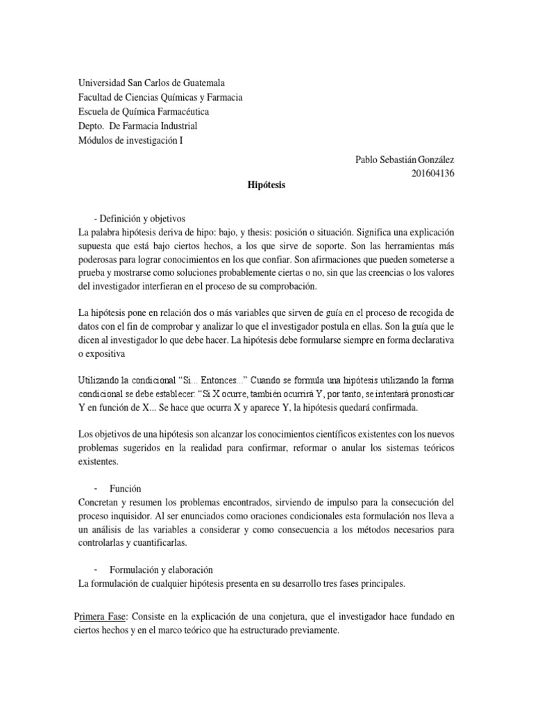 La formulación de cualquier hipótesis presenta en su desarrollo tres fases principales.