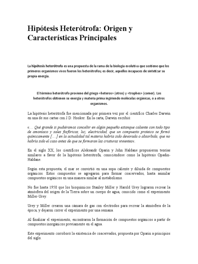La hipótesis heterótrofa fue mencionada por primera vez por el científico Charles Darwin