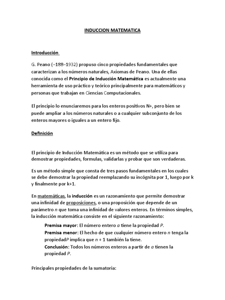 conocida como el Principio de Inducción Matemática es actualmente una