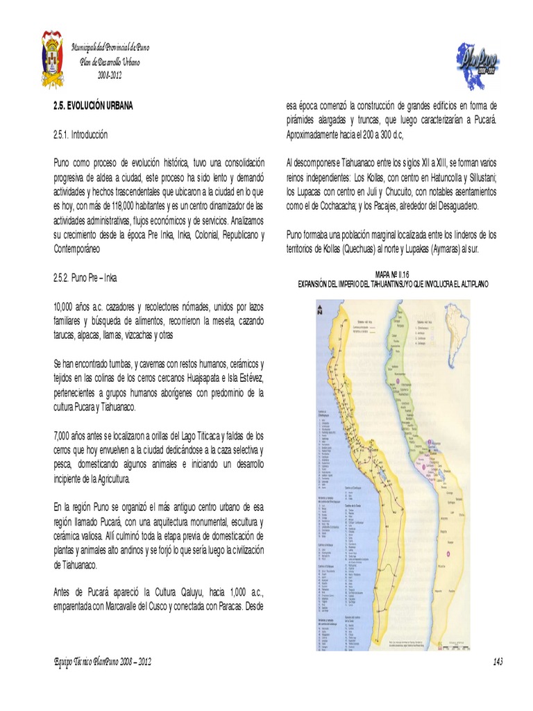 su crecimiento desde la época Pre Inka, Inka, Colonial, Republicano y Puno formaba una población marginal localiz ada entre los linderos de los