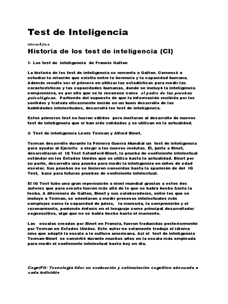 La historia de los test de inteligencia se remonta a Galton. Comenzó a