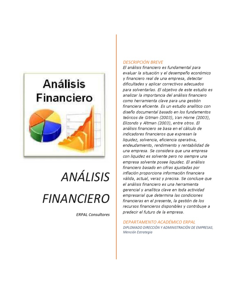 El análisis financiero es un tema muy extenso y, sin lugar a dudas, constituye una herramienta