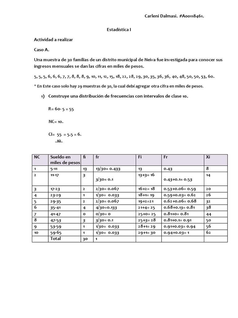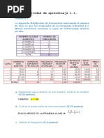 1) Construye una distribución de frecuencias con intervalos de clase 10.