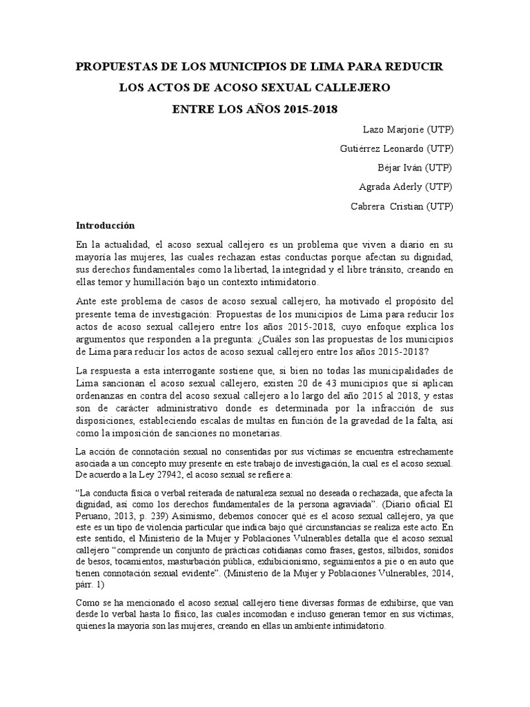 municipalidades de Lima para reducir el acoso sexual callejero. El primer argumento se justifica